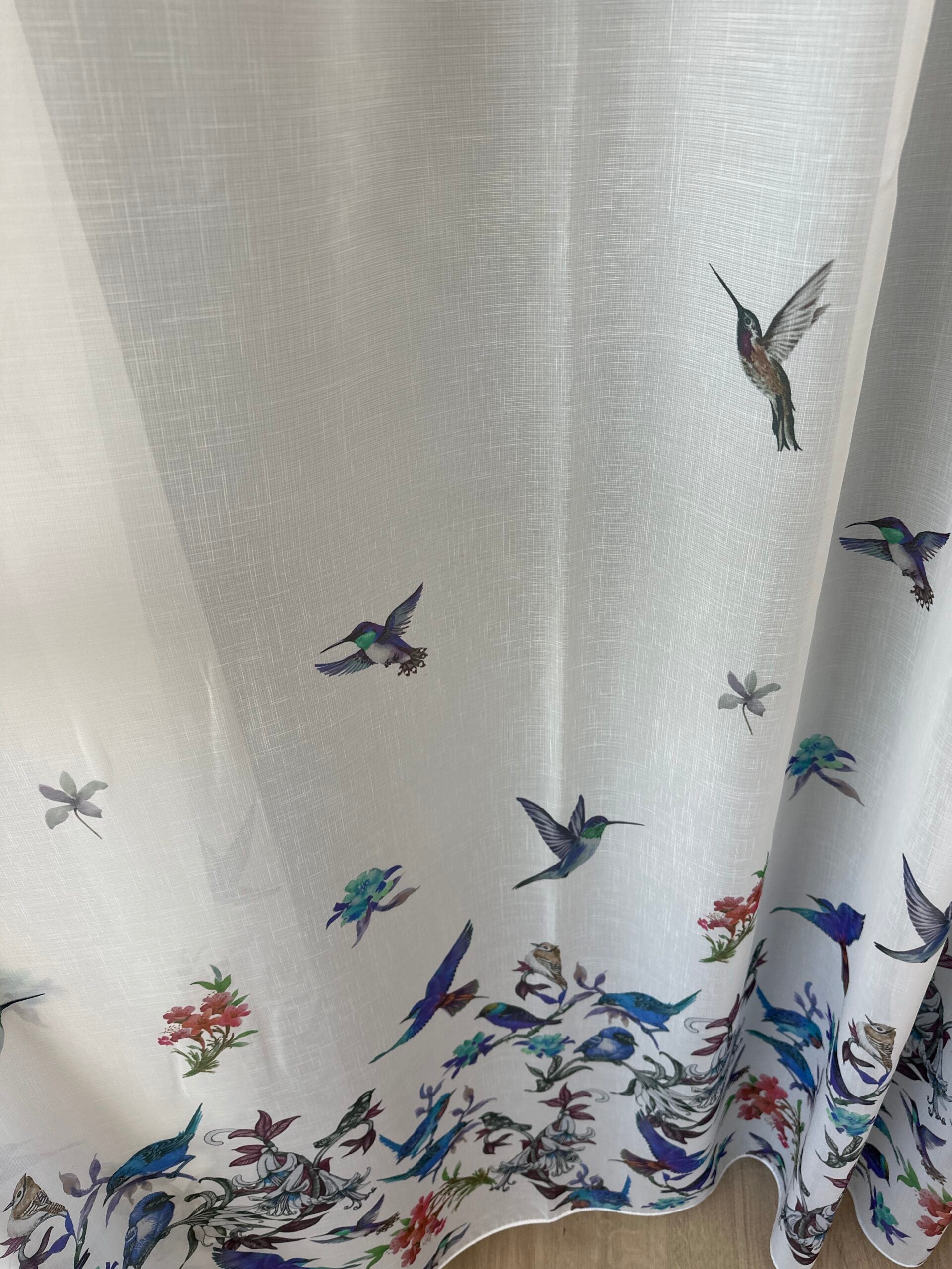 Această perdea albă cu imprimeu de păsări și flori aduce un plus de rafinament și naturalețe oricărei încăperi. Designul este echilibrat și aerisit: partea superioară rămâne simplă și luminoasă, iar imprimeul decorativ este poziționat discret în partea inferioară, creând un efect vizual elegant.